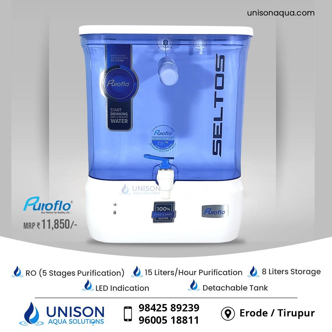 > RO - 5 Stages Purification > 15 Liters/Hour Purification > 8 Liters Storage Tank > Detachable Storage Tank > LED Indication